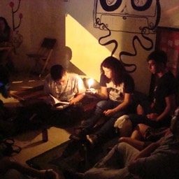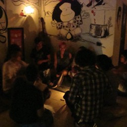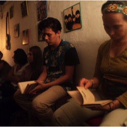 Cerca de 250 jóvenes en un bar, La Galería. Lectura en religioso silencio durante casi 5 horas.