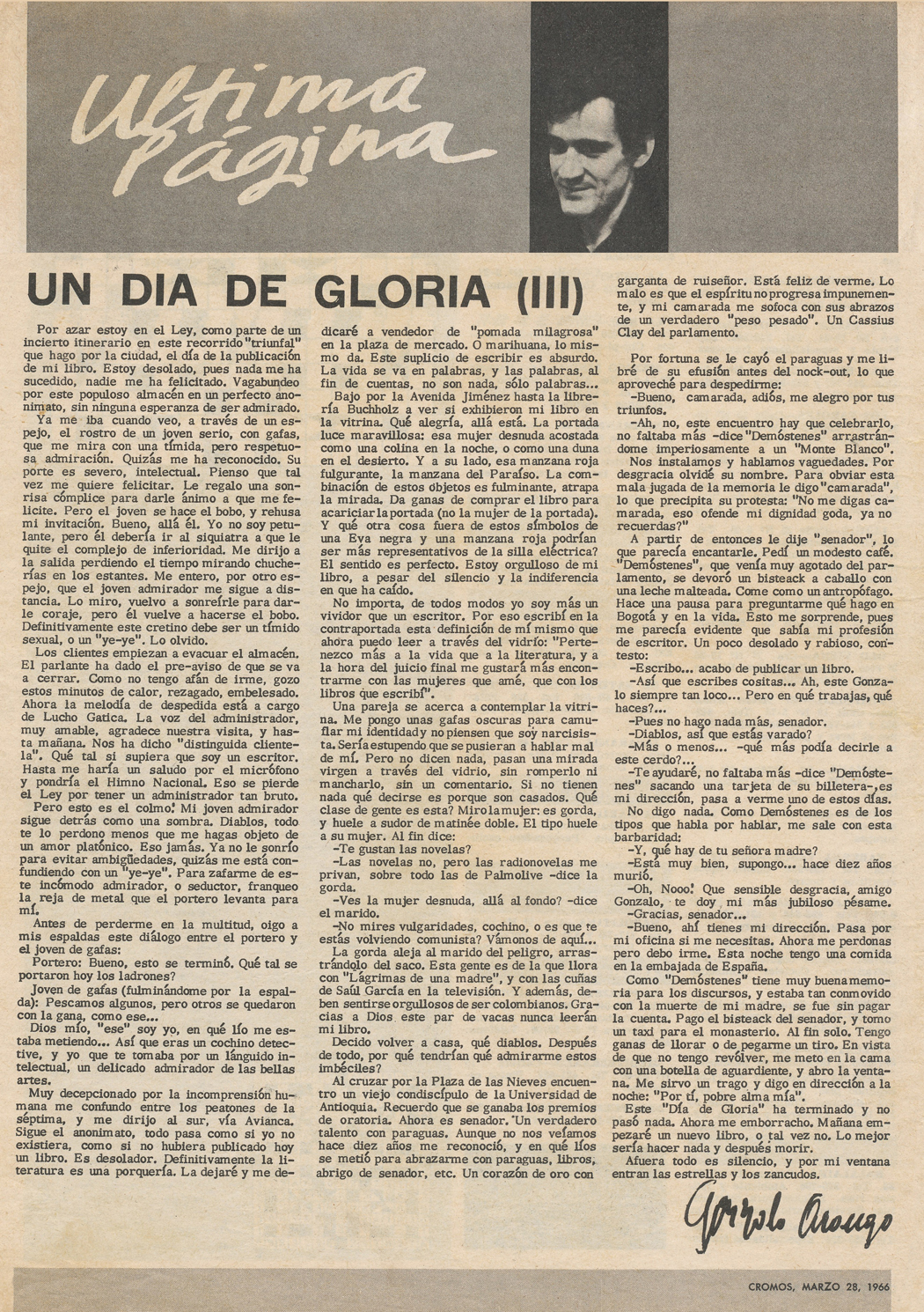 *este texto está publicado en el libro "Última Página" y en la página web del poeta Gonzalo Arango.