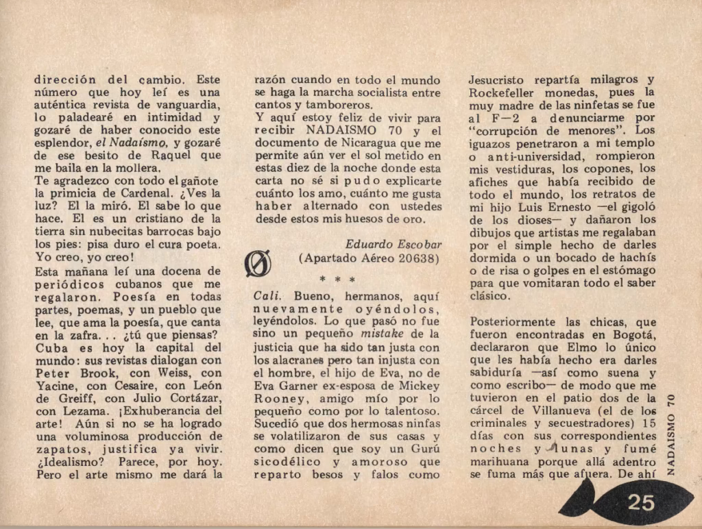 Durante 5 años - (1965-1969) - Gonzalo Arango, usando el pseudónimo de Aliocha, tuvo un espacio llamado "Última Página"en la revista CROMOS.