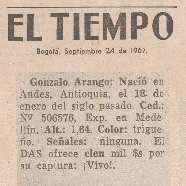 el título que anunciaba la muerte del nadaísta Gonzalo Arango.